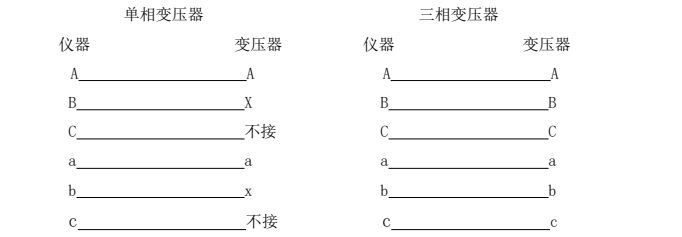 變壓器的中性點(diǎn)不接儀器,不接大地。接好儀器地線。將電源線一端插進(jìn)儀器面板上的電源插座(內(nèi)付2A的保險),另一端與交流220V電源相聯(lián)。