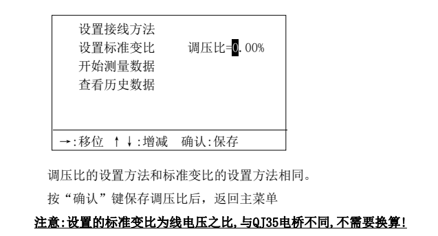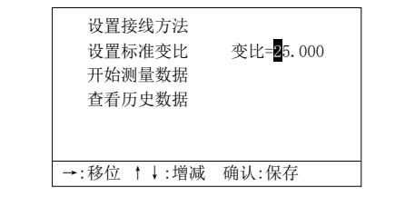 4.設(shè)置標(biāo)準(zhǔn)變比,進(jìn)入標(biāo)準(zhǔn)變比設(shè)置后,液晶屏顯示如下: