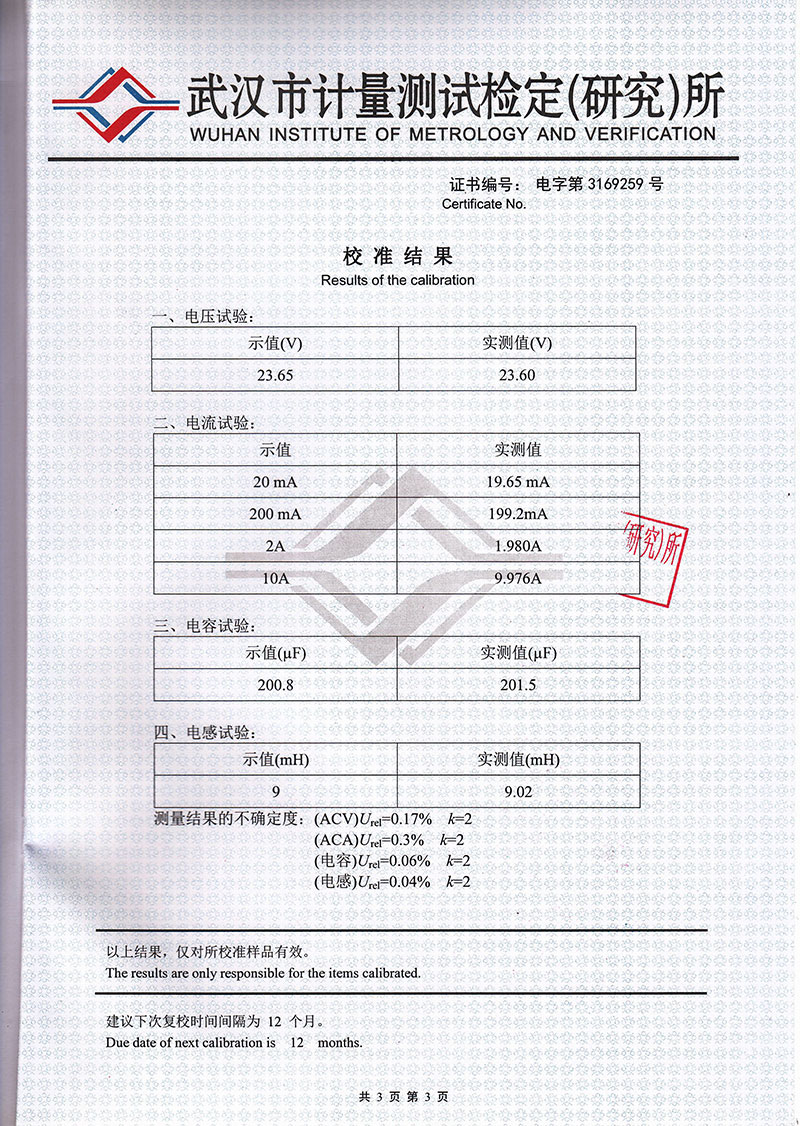 當10A≤Ic≤130A即9μF<Cx≤120μF ±(讀數×5%±5個字)