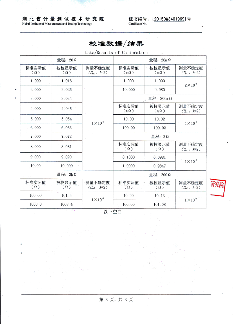測量范圍 2.5A:     1μΩ~8Ω