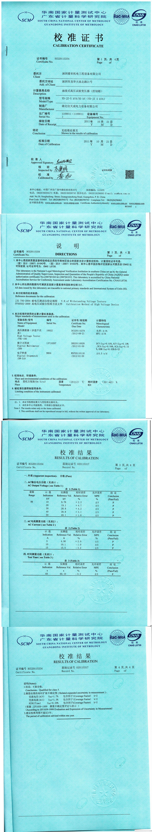 轉載:"YD-JZ-5油浸式高壓試驗變壓器資質證書" 請注明來源于儀天成電力。 更多技術問題請致電儀天成電力客戶服務:027-87876585,技術部專線:027-87876585,在線客服:719388481